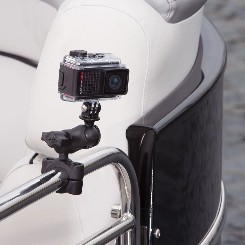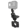 Baza de montare RAM® Torque™ are o bilă de cauciuc de 1” și se poate monta pe bare cu diametrul de 1 1/8” până la 1 1/2”. Sunt incluse mansoane de dimensionare pentru a oferi o potrivire perfectă și o protecție a șinei. Suportul utilizează piulițe de blocare cu nailon pentru a preveni slăbirea în conditii de utilizare cu vibrații mari. Este inclus un braț scurt dublu priză și un suport pentru GoPro/camera de acțiune.