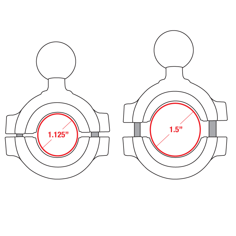 The large version of the RAM® Torque™ handlebar mounting base features a 1″ B size RAM® rubber ball and is compatible with rails 1 1/8” to 1 1/2″ in diameter. Sizing inserts are included to provide a tight fit while also protecting the mounting surface. The large RAM® Torque™ mounting base also includes nylon-insert locknuts to prevent loosening in high vibration environments.