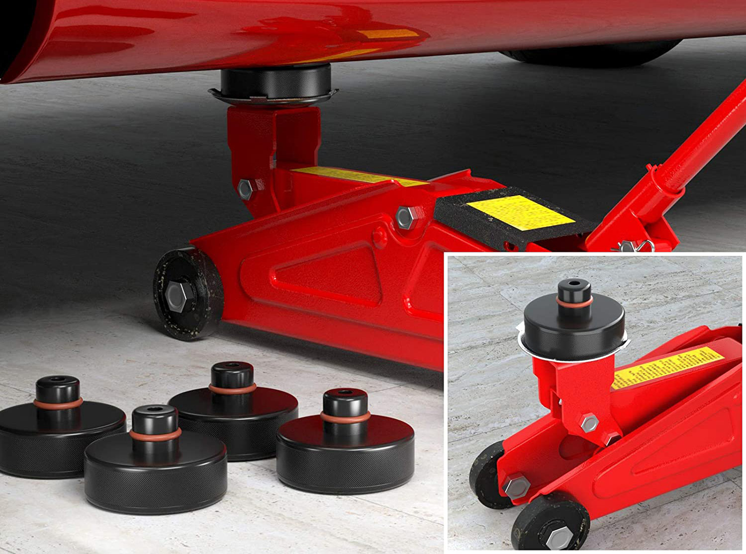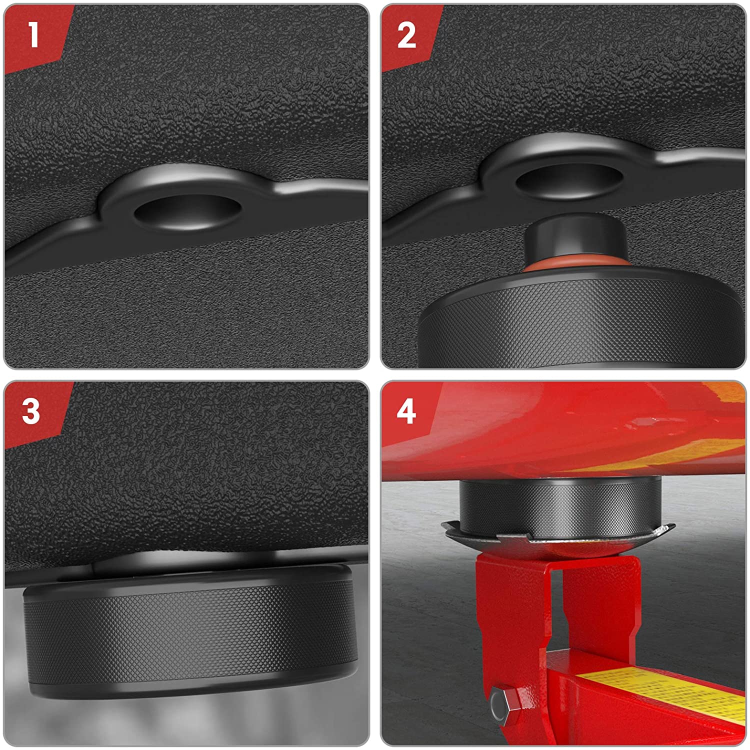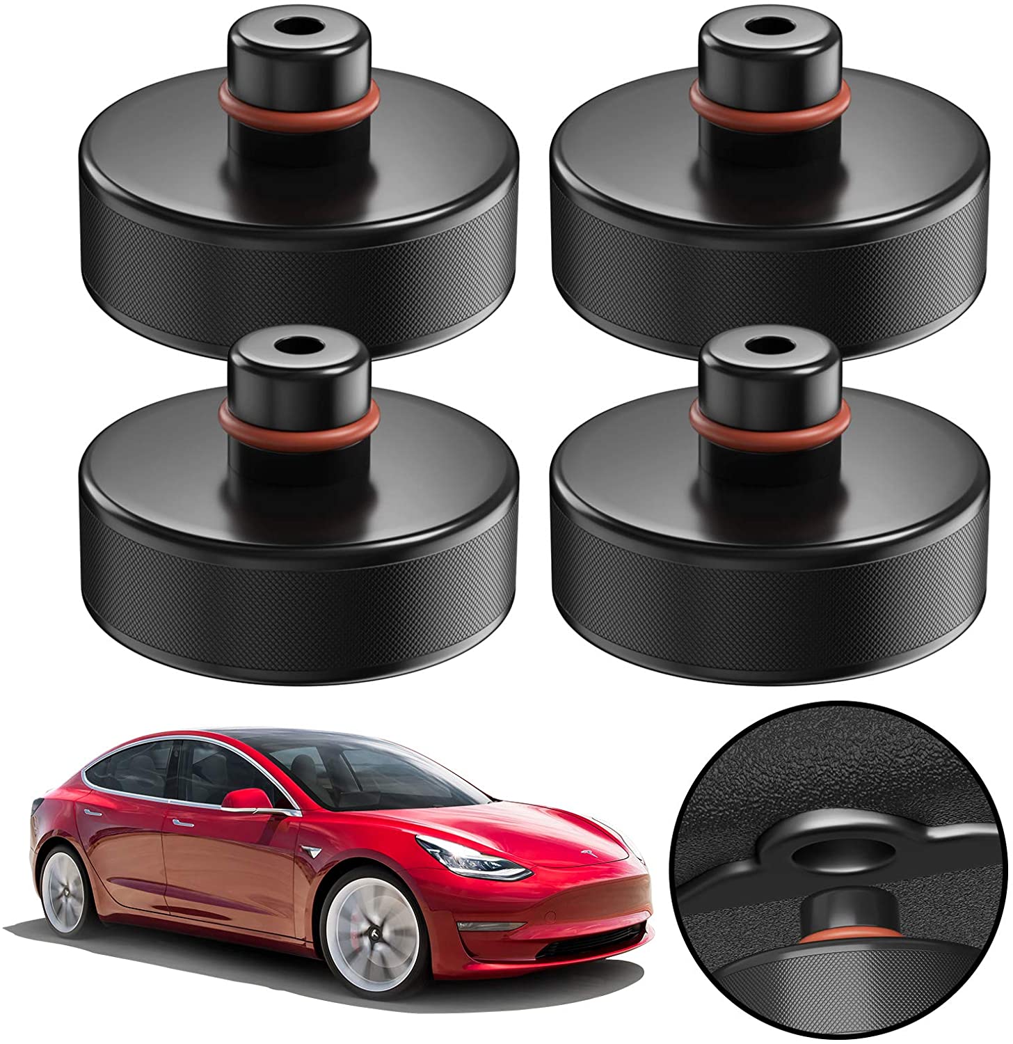 Set de 4 suporti din cauciuc pentru ridicarea pe elevator in cazul autovehiculelor Tesla Model 3, Model Y, Model S si Model X.