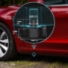 Pentru protejarea bateriilor Tesla, inaintea ridicarii pe elevator a masinii, suportii de cauciuc se introduc usor, prin apasare, in punctele de ridicare ale masinii (sunt indicate in manualul de utilizare al autovehiculului).