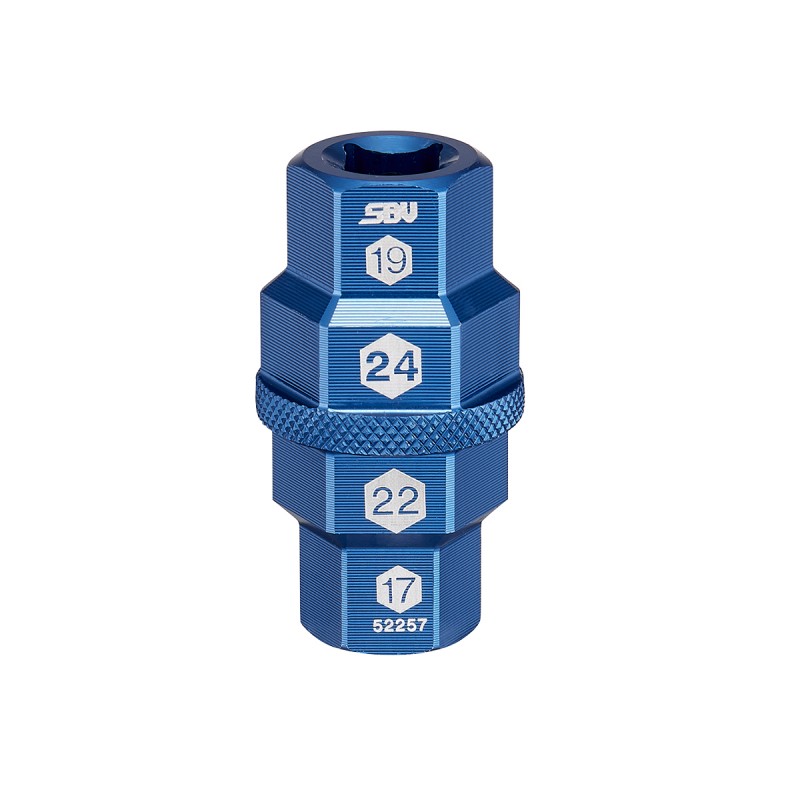 3/8” Dr. Aluminum hex axle tool (17-22mm / 24-19mm), max 120 Nm (52257)