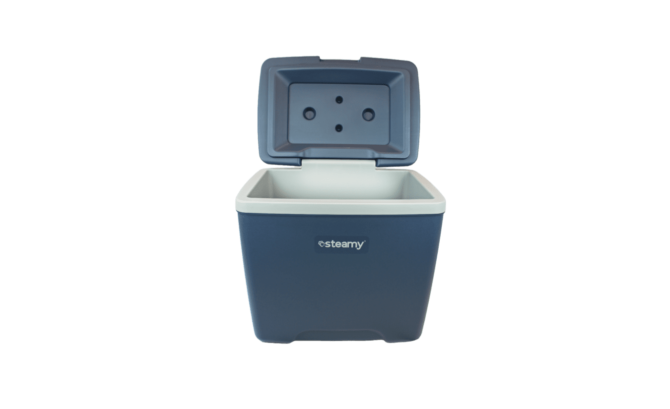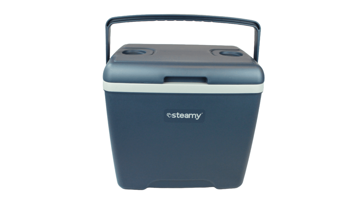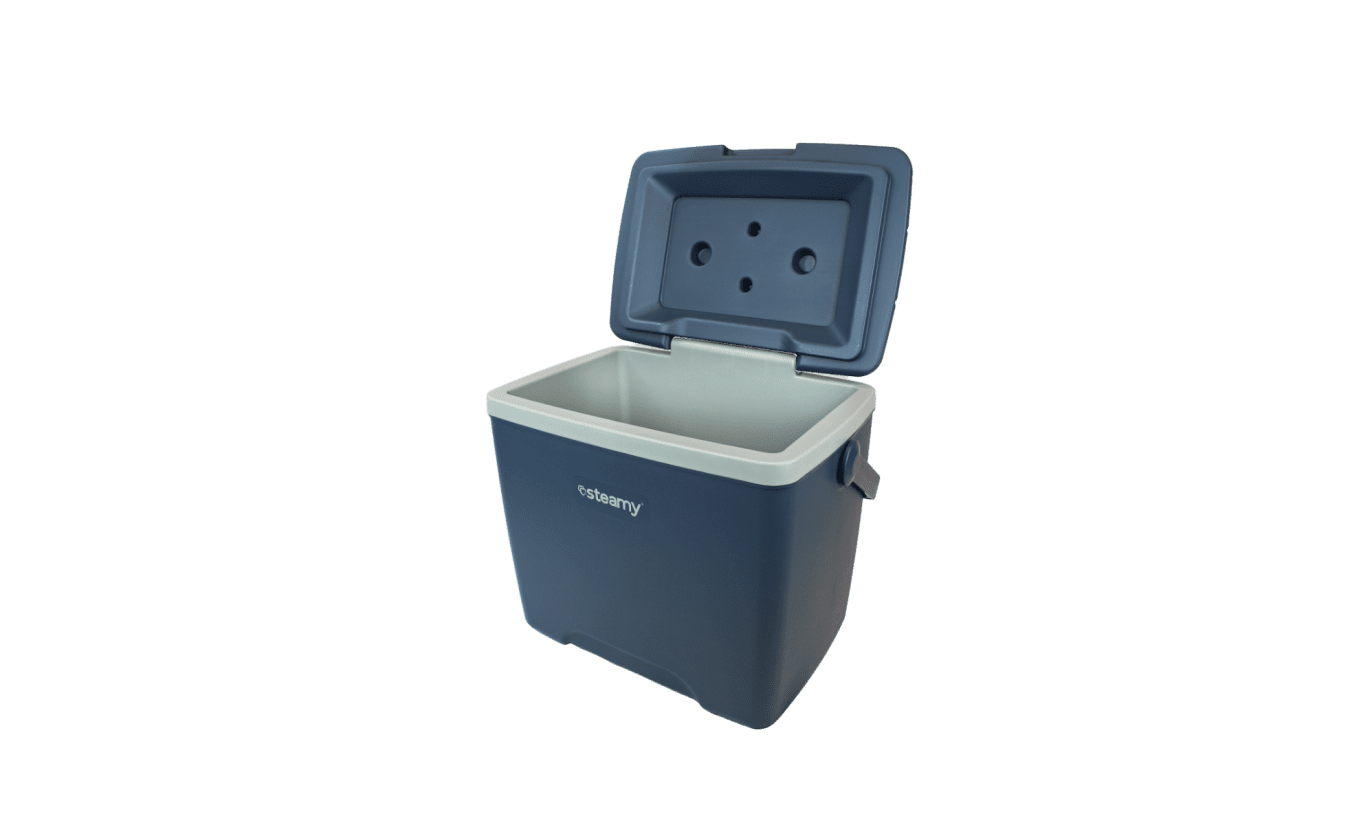 Steamy 28 este o cutie frigorifică robustă și elegantă, realizată din polietilenă cu duritate ridicata. Această cutie frigorifică este echipată cu izolație triplă, rezultând pierderi minime de temperatura. Constructia cu un design avansat previne în mod eficient schimbul de temperatura cu solul. Cu o capacitate de 28 de litri, este o optiune ideala pentru diverse situatii, precum iesiri in parcuri, vacante si chiar acasa sau la serviciu. Dimensiunea și designul robust fac, de asemenea, cutia frigorifică perfectă pentru utilizarea zilnică în sectorul construcțiilor.