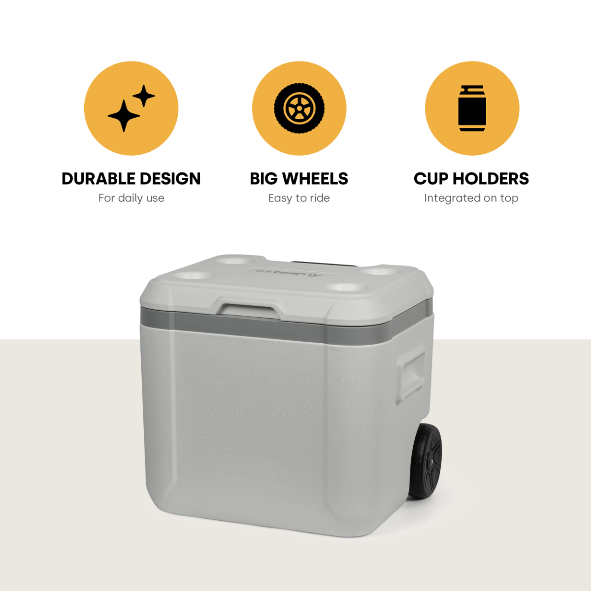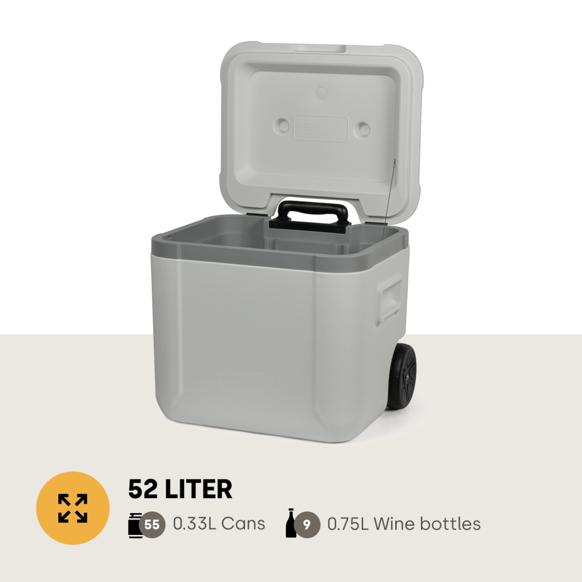 Cu o capacitate de 52 de litri, această cutie frigorifică pe roți, oferă suficient spațiu de depozitare pentru toate necesitățile tale. Acest model este, de asemenea, proiectat în așa fel încât contactul cu suprafața să fie minimizat, ceea ce extinde semnificativ capacitatea de răcire. Împreună cu izolația cu spumă de înaltă calitate, aceasta asigură o capacitate excelentă de răcire. Designul înalt facilitează transportul sticlelor de 1,5 litri în picioare.