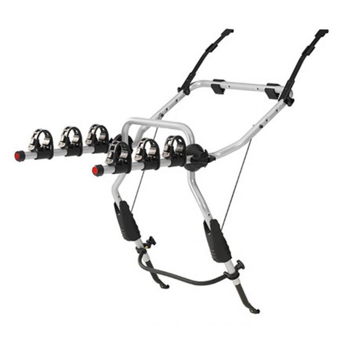 Thule ClipOn 9104 este un suport dotat cu functii inteligente, pentru transportarea a pana la 3 biciclete (sarcina totala max. 45 kg), ce se fixeaza foarte usor pe haion-ul autoturismelor hatchback sau break.